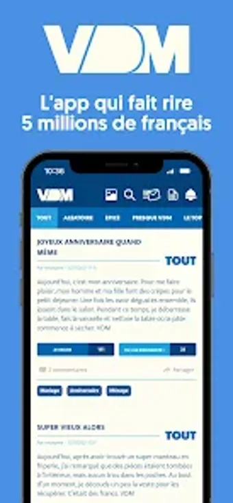 VDM é um aplicativo de estilo de vida que proporciona diversão e descontração ao compartilhar momentos embaraçosos e engraçados dos usuários. Com quase uma década de história, VDM reúne uma comunidade que valoriza a autenticidade, permitindo que as pessoas riam de suas experiências cotidianas sem o peso do julgamento. O aplicativo oferece uma seleção diária de histórias engraçadas e situações inusitadas, tornando-se um espaço onde os usuários podem se sentir à vontade para compartilhar suas próprias vivências.